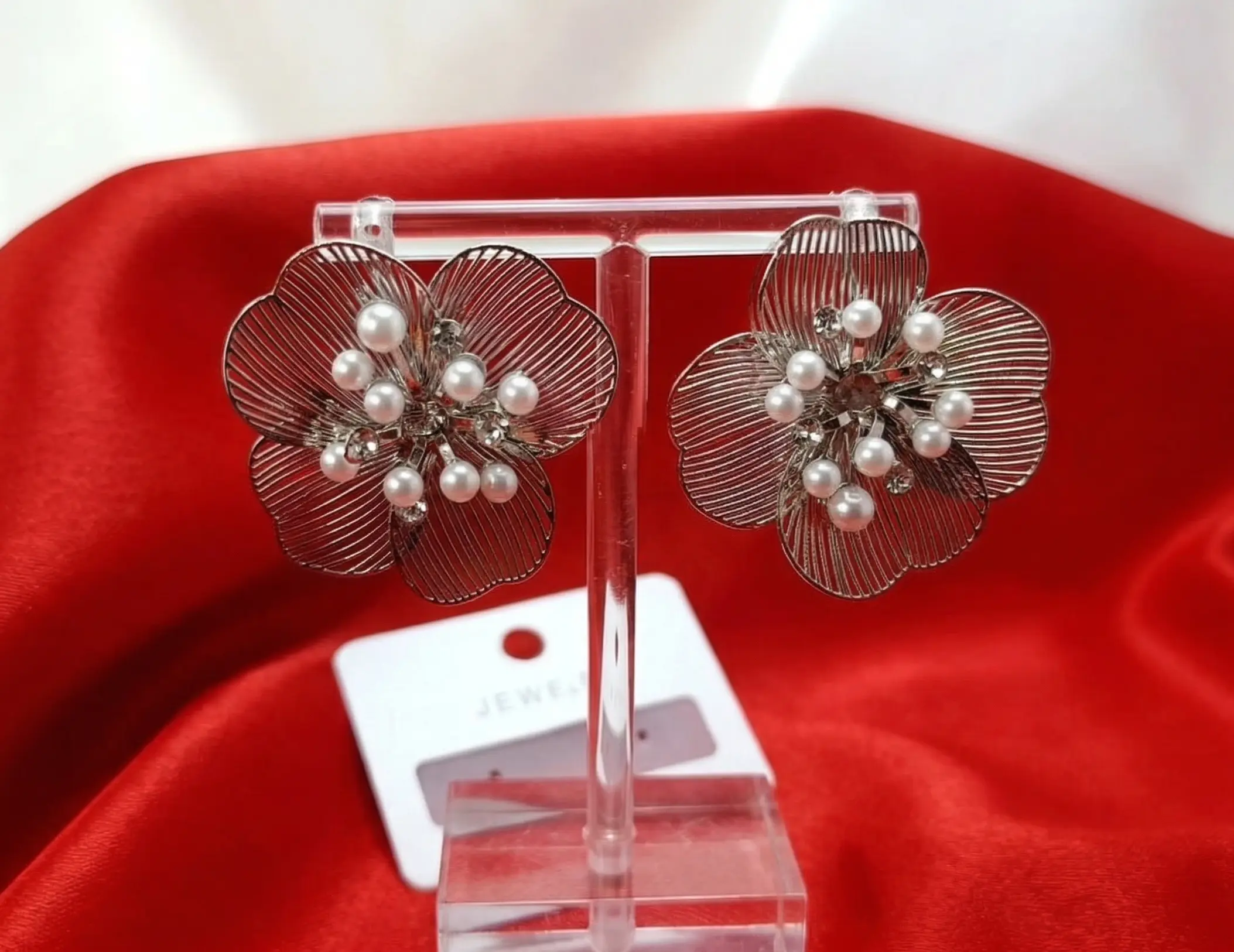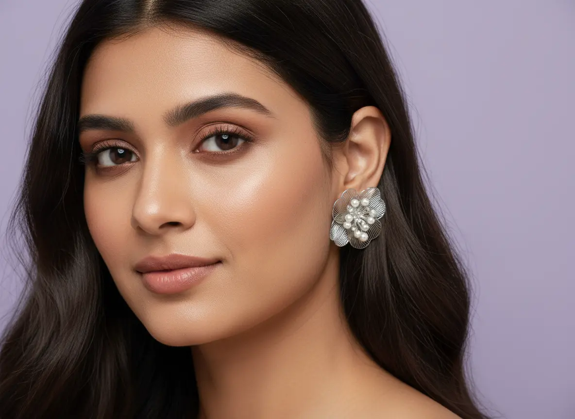 Silver-Plated Filigree Floral Studs with Pearl Accents