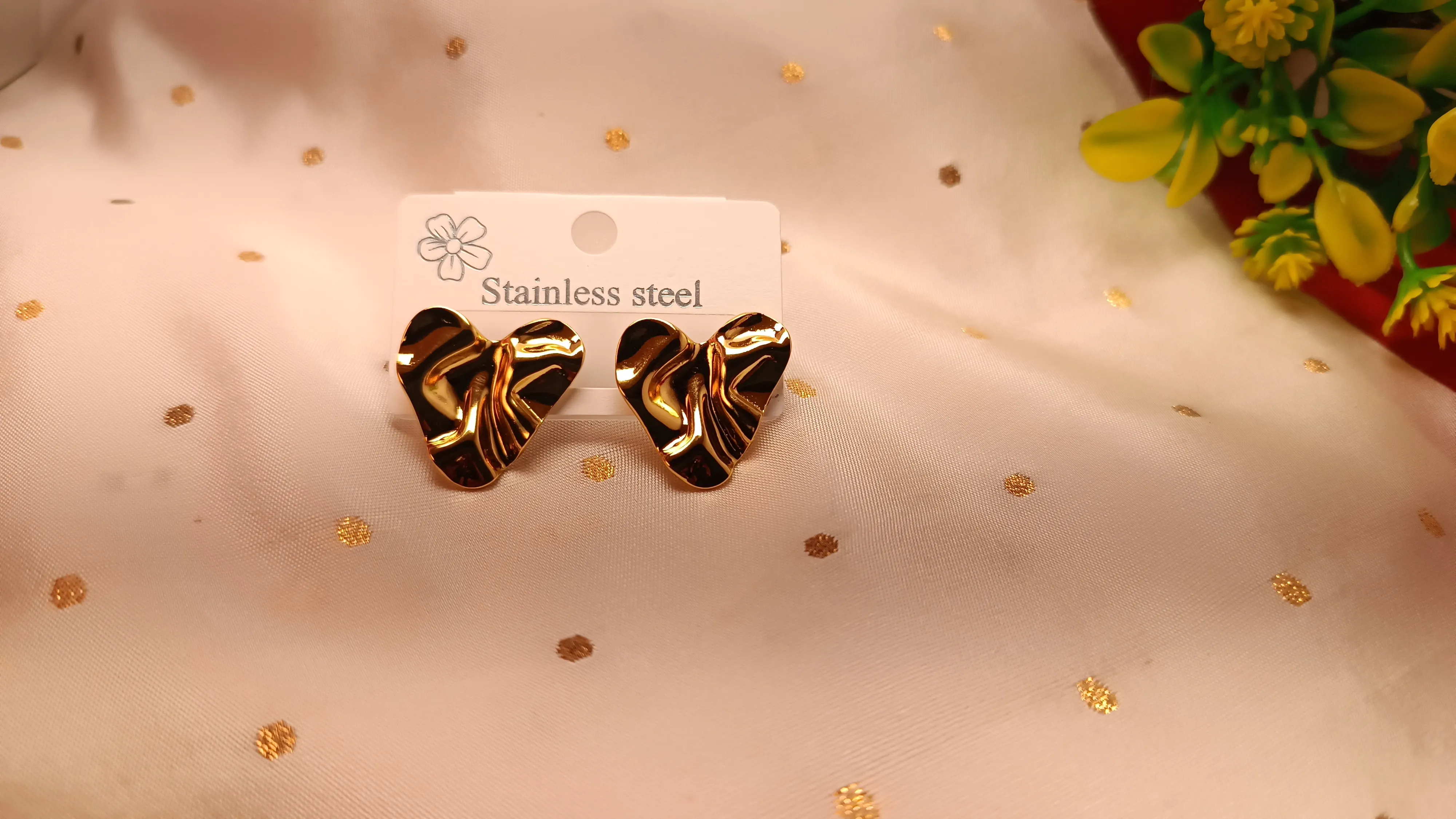 Sculptural Silhouette: A unique, textured heart design that adds artistic flair to any outfit. Premium SS316L: Durable, hypoallergenic, and safe for even the most sensitive ears. High-Vacuum Plating: Features a deep 18K gold luster that resists scratches and fading. Secure Fit: Lightweight construction paired with sturdy butterfly backings for all-day comfort.