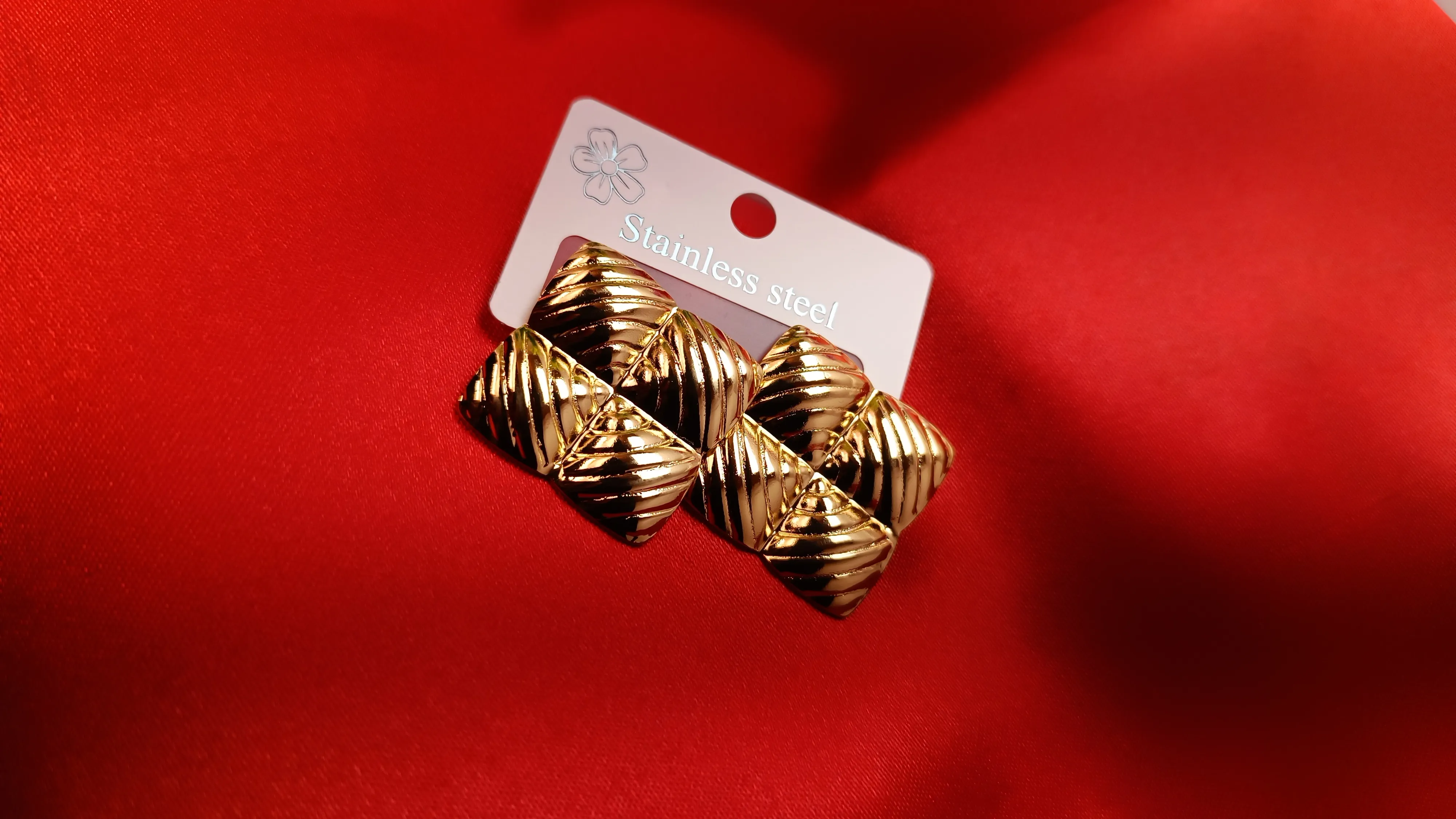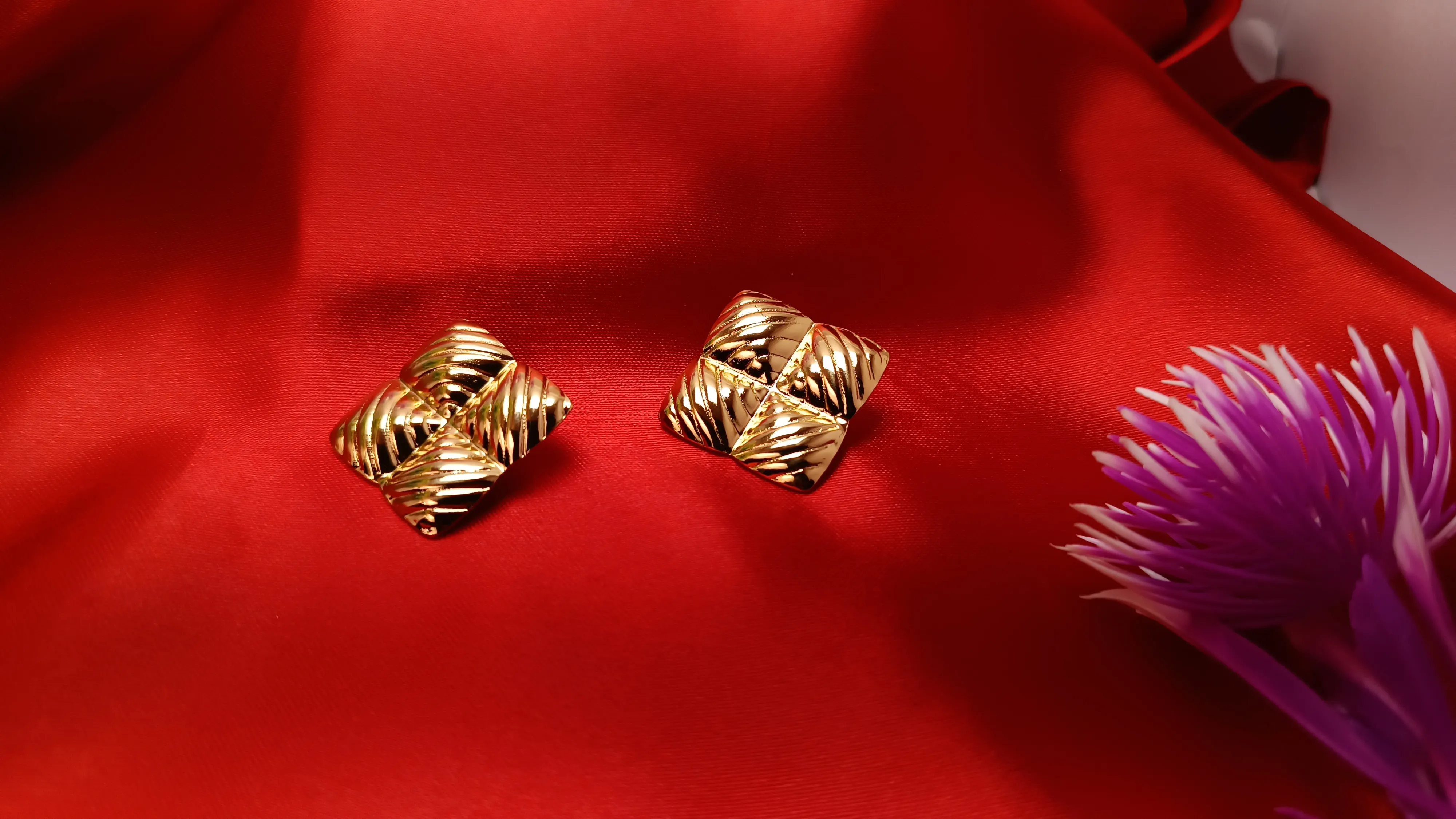 A masterclass in geometric elegance. Our Gilded Quilt Geometric Studs bring a structured, architectural beauty to your jewelry collection. The unique four-quadrant design features alternating ribbed textures that play with light and shadow, giving these studs a three-dimensional depth that mimics the look of high-end custom jewelry.