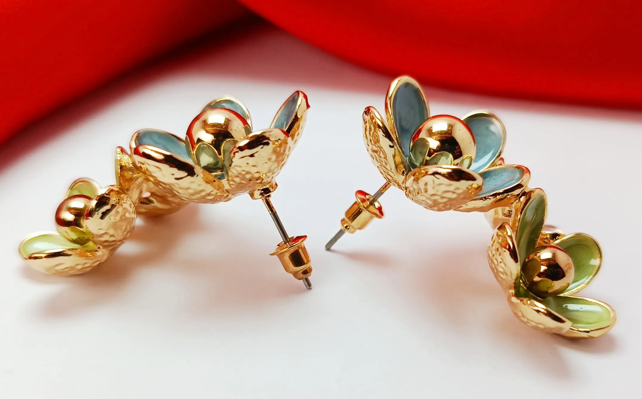 Product Type: Stud Earrings Design: Korean-Inspired Multi-Floral Stone Type: Resin Stones Color: Teal Blue, Pastel Pink, Leaf Green & Gold Finish: Glossy with Gold-Tone Plating Base Material: Premium Alloy Closure Type: Push Back / Stud Style: Trendy, Elegant, Playful Occasion: Casual Wear, Party Wear, Festive, Office Chic, Gifting Comfort: Lightweight & Easy to Wear Ideal For: Women & Girls