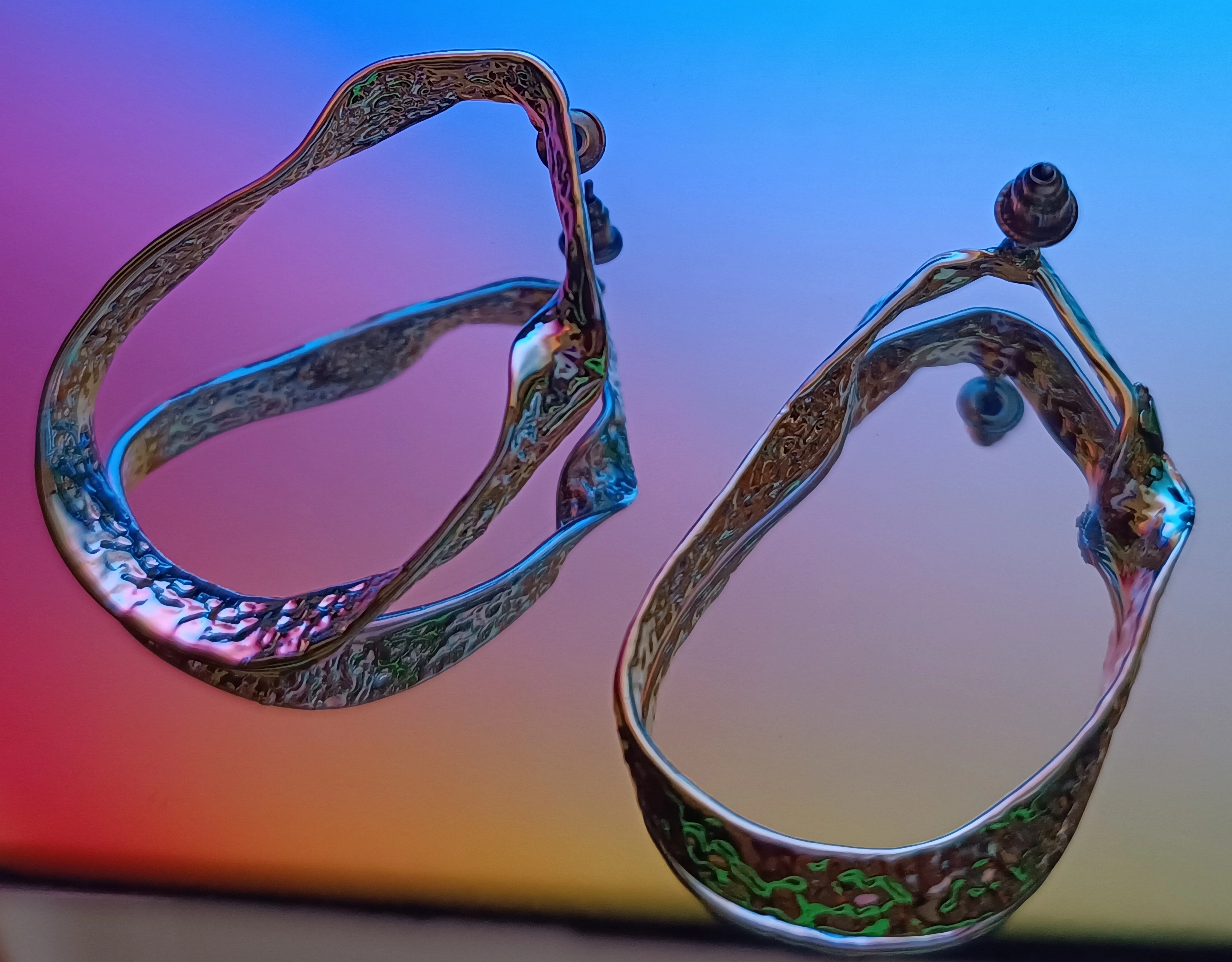 The unique, asymmetrical shape and textured surface catch the light from every angle, creating a sophisticated and high-fashion aesthetic. Crafted with a high-polish gold finish, these open hoops are lightweight enough for all-day wear while remaining bold enough to be the centerpiece of your evening look. Perfect for the modern woman who values avant-garde style and effortless elegance.