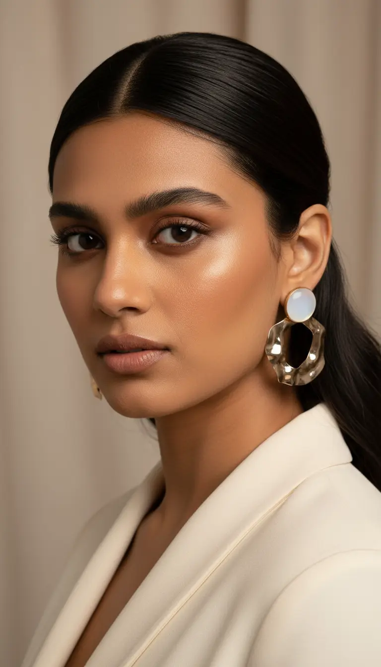 Step into a world of organic luxury with the Ethereal Tide Moonstone Drops. These striking statement earrings feature a high-polish, cabochon-cut moonstone stud that emits a soft, milky glow. Suspended below is a bold, hammered geometric hoop with an irregular, "molten" silhouette that mimics the shimmering reflection of moonlight on moving water.
