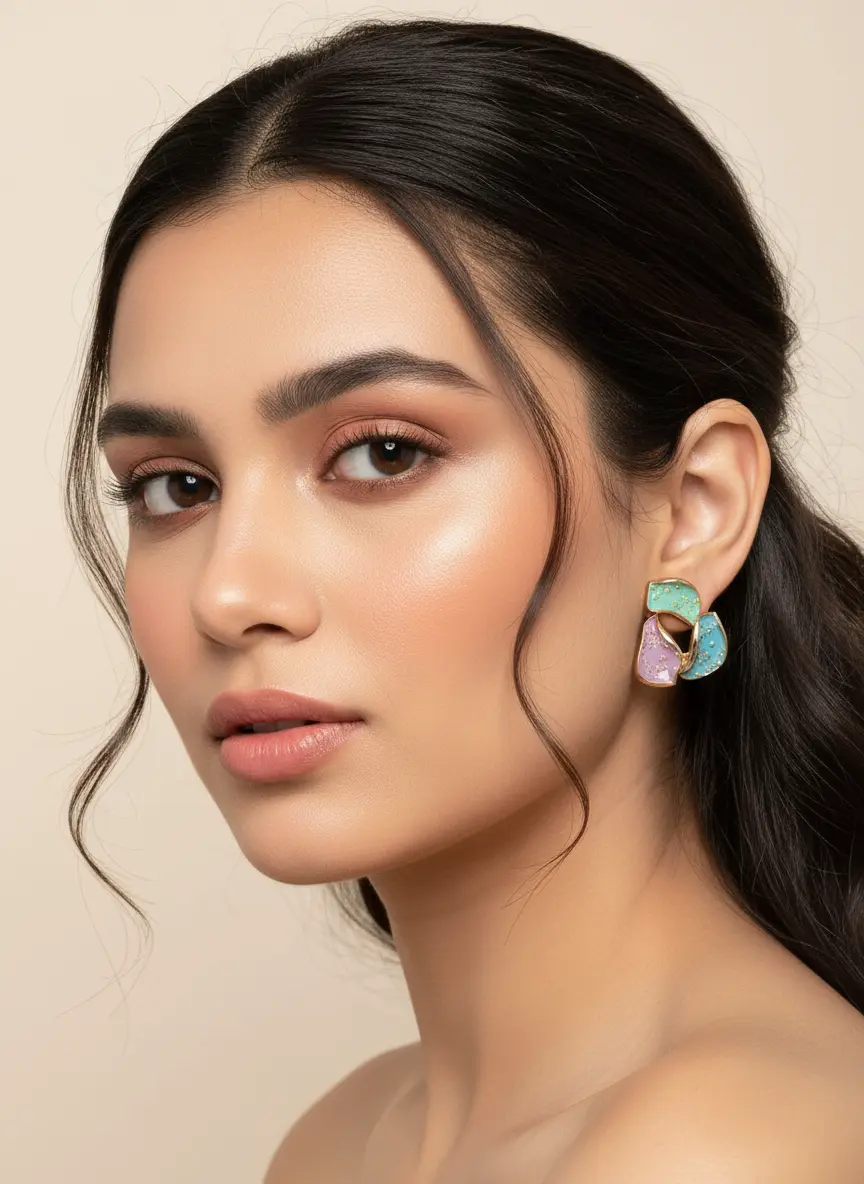 Designed for the woman who loves a "pop of color" without the bulk, these medium-sized studs are textured with delicate gold-tone micro-beads for a touch of vintage shimmer. Lightweight and hypoallergenic, they are the perfect transition piece from a creative workday to a casual evening out.