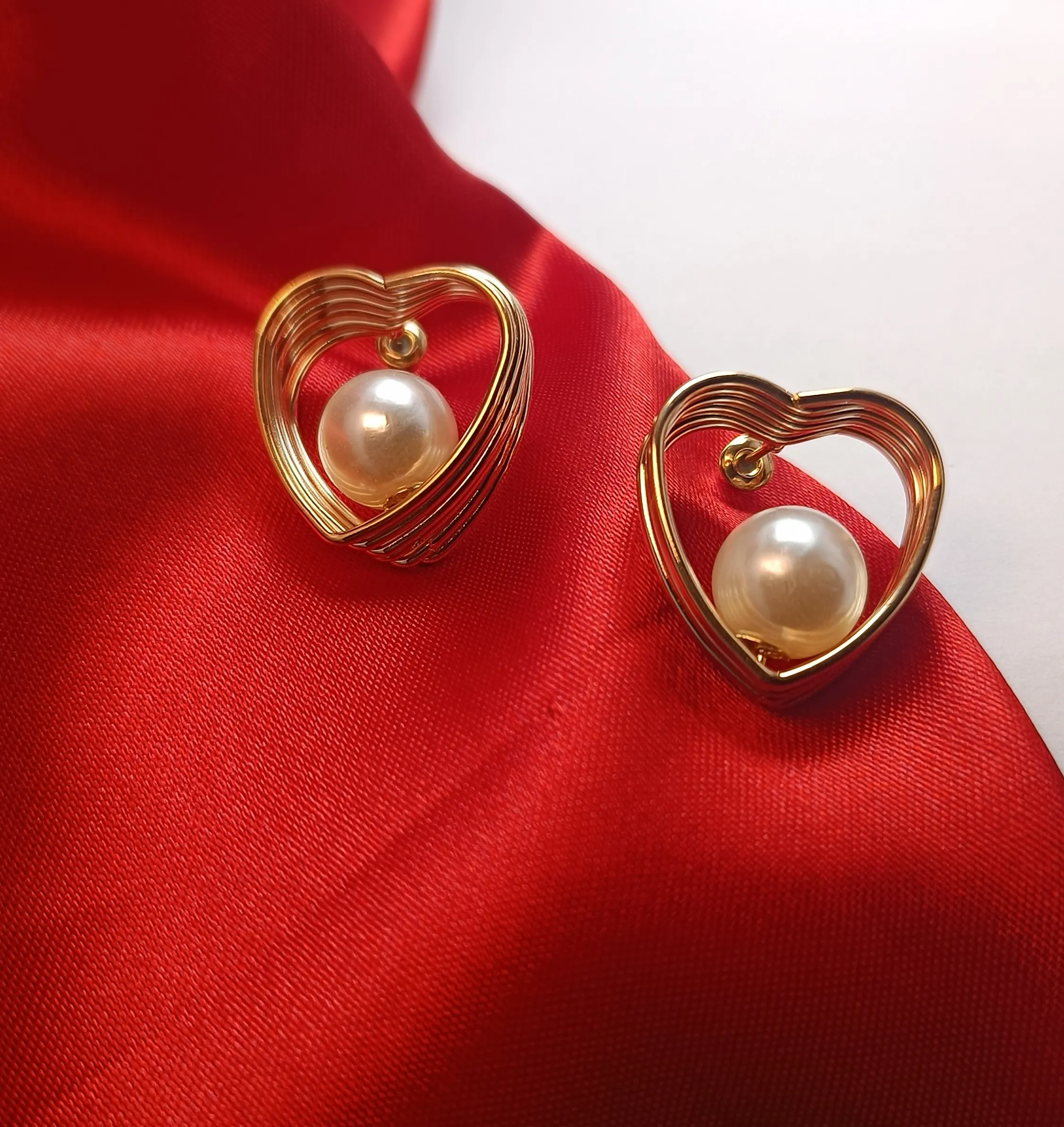Infuse your look with a touch of timeless romance with our Romance Glow Pearl Heart Earrings. These captivating studs feature an intricate, multi-layered spiral wire design that elegantly forms a hollow heart silhouette. Nestled within the golden embrace of each heart is a high-luster, creamy pearl that captures the light with every movement.