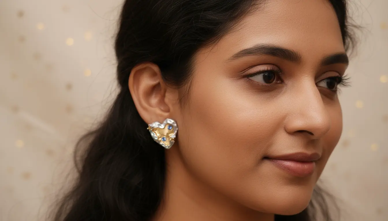 For a hint of regal brilliance, each heart is hand-set with faceted crystals in deep sapphire and amethyst tones. These studs are a masterclass in modern Baroque design, offering a high-impact, artistic profile that remains feminine and whimsical. They are the perfect statement piece for the woman who loves jewelry that is both a work of art and a conversation starter.