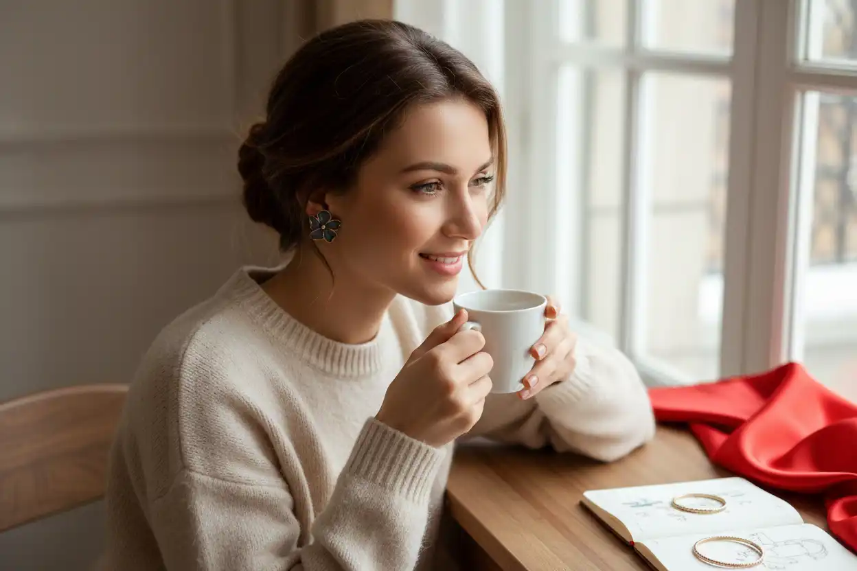 Inspired by flowers blooming under moonlight, the Midnight Bloom earrings offer a graceful blend of minimalism and glamour. The glossy resin petals catch light beautifully, while the intricate gold edging adds a couture finish. Lightweight and skin-friendly, they ensure comfort without compromising on style.