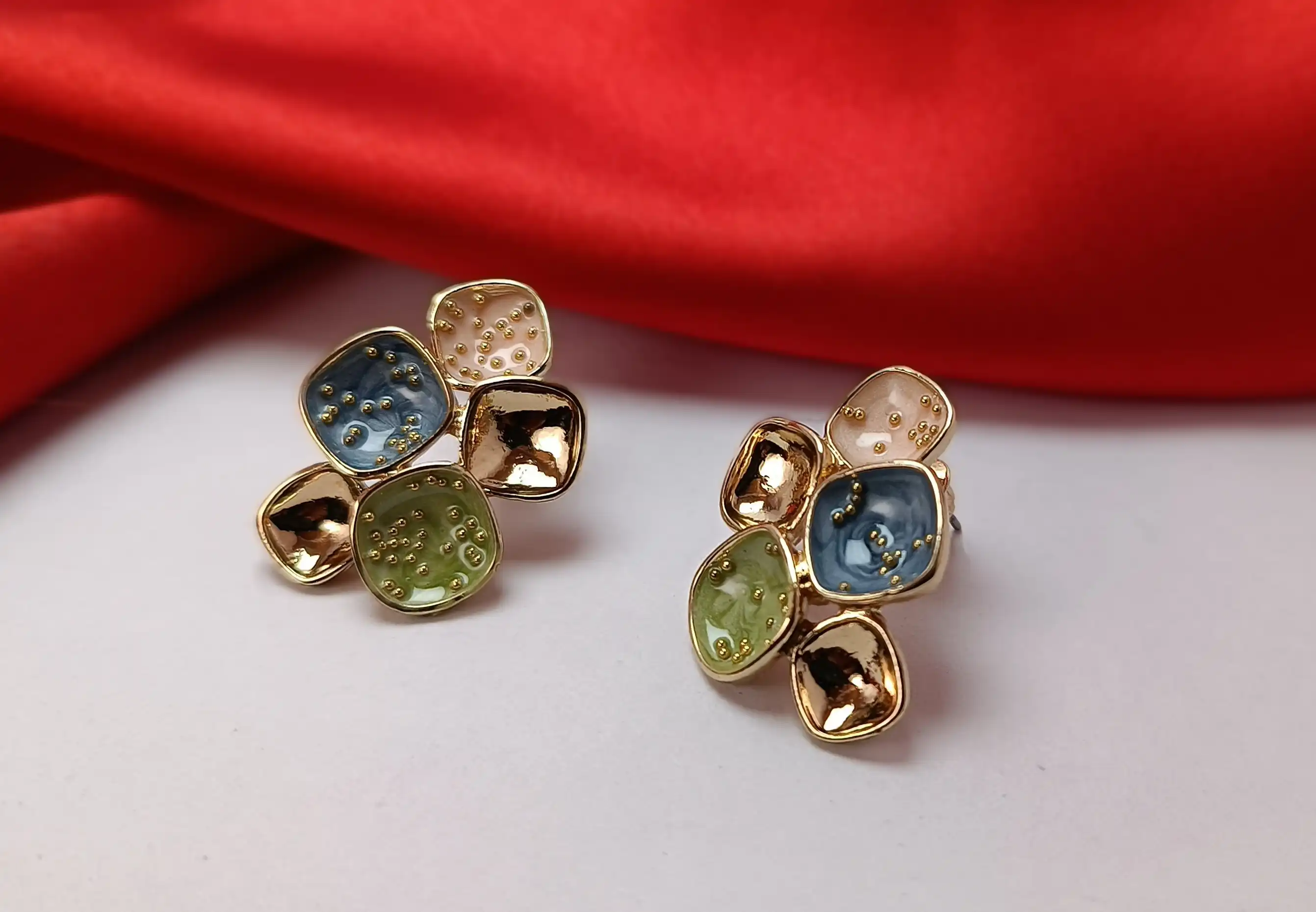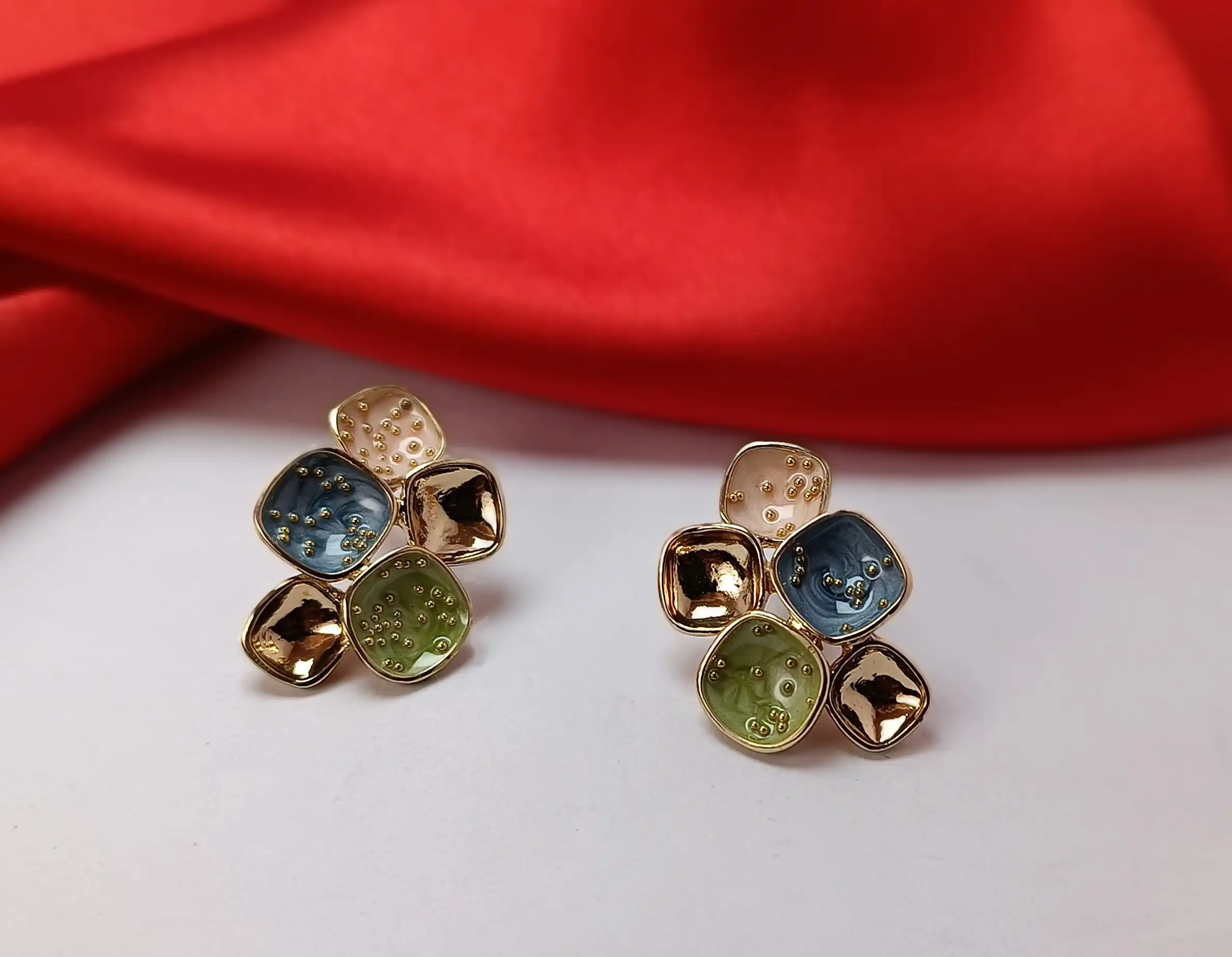 Colorful Mosaic Bloom Enamel Earrings – Gold Plated Abstract Cluster Studs