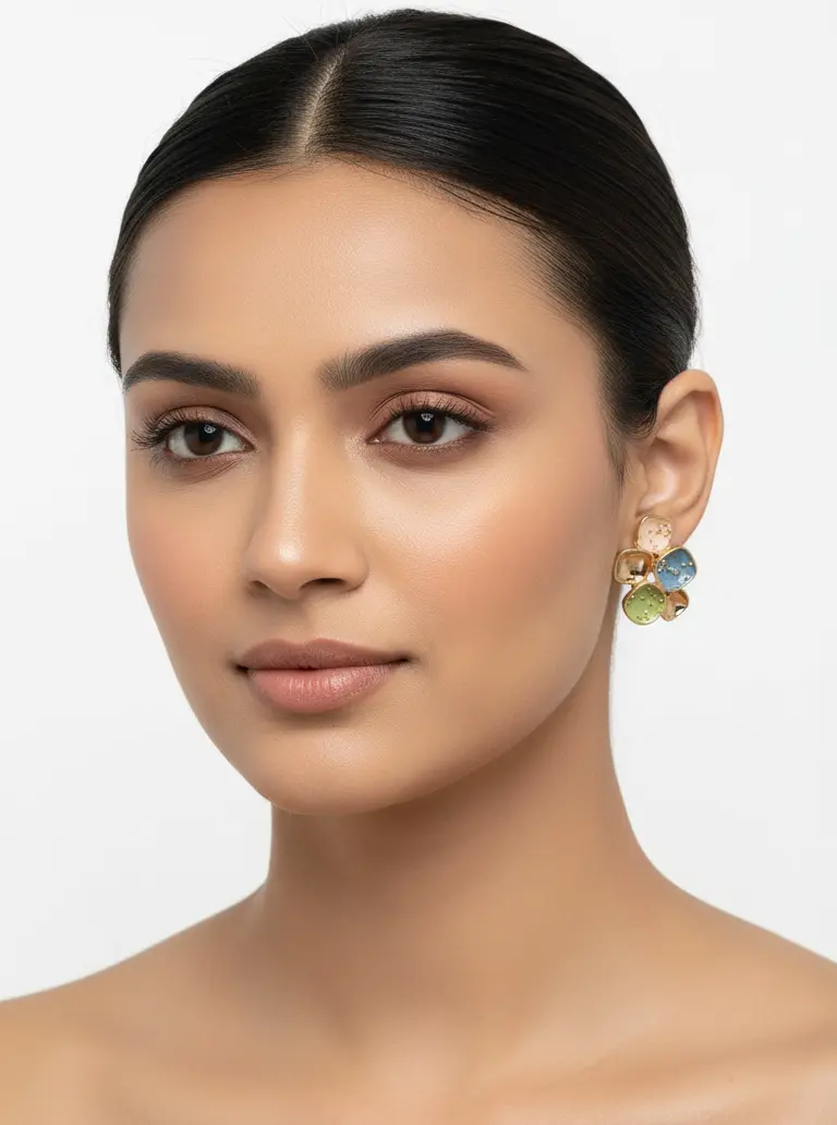 Infuse your jewelry collection with an artistic splash of color with the Mosaic Bloom Enamel Studs. These captivating earrings feature a clustered arrangement of organic, square-shaped "petals," each meticulously hand-painted with vibrant enamel. The abstract design creates a beautiful mosaic effect, blending high-fashion structural elements with a playful, artistic flair.
