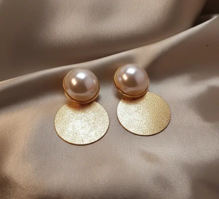 Golden Luna Textured Disc & Pearl Drop Stud Earrings - Vintage-Inspired Statement Jewelry