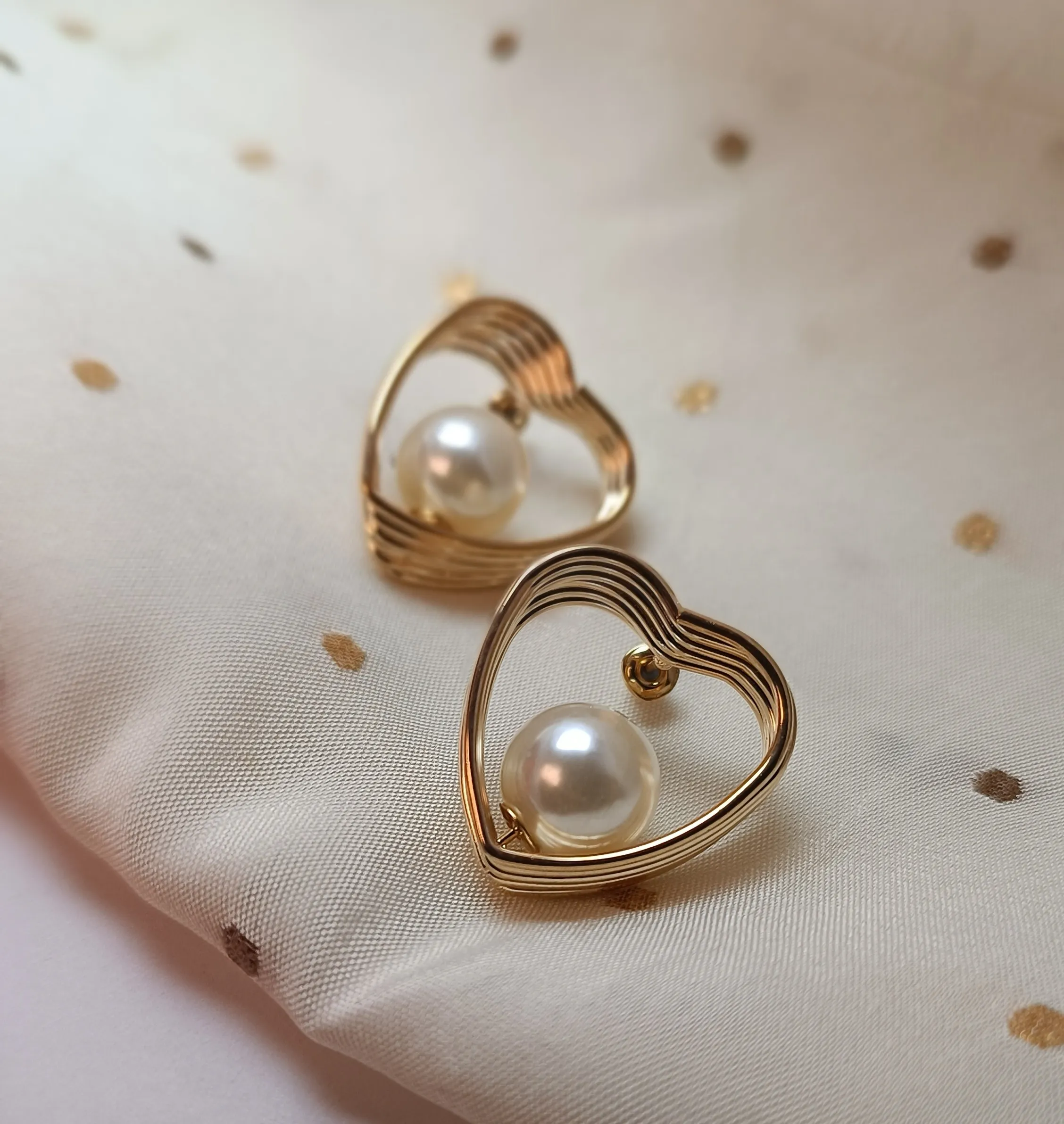 Infuse your look with a touch of timeless romance with our Romance Glow Pearl Heart Earrings. These captivating studs feature an intricate, multi-layered spiral wire design that elegantly forms a hollow heart silhouette. Nestled within the golden embrace of each heart is a high-luster, creamy pearl that captures the light with every movement.