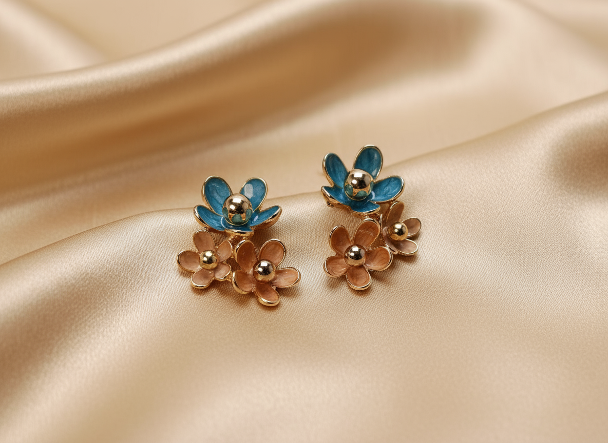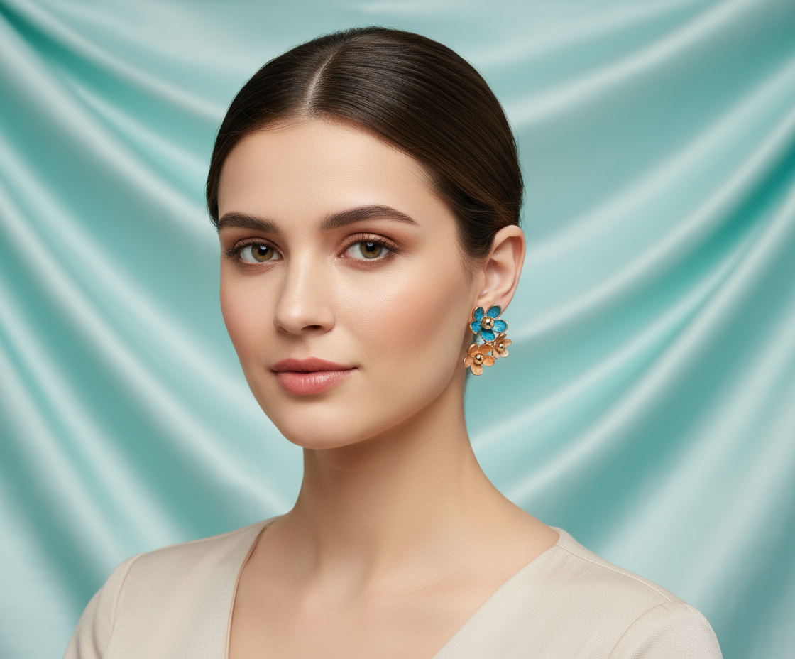 Product Type: Stud Earrings Design: Korean-Inspired Multi-Floral Stone Type: Resin Stones Color: Teal Blue, Pastel Pink, Leaf Green & Gold Finish: Glossy with Gold-Tone Plating Base Material: Premium Alloy Closure Type: Push Back / Stud Style: Trendy, Elegant, Playful Occasion: Casual Wear, Party Wear, Festive, Office Chic, Gifting Comfort: Lightweight & Easy to Wear Ideal For: Women & Girls