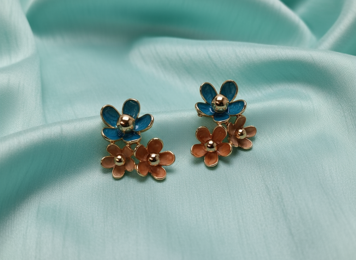 Add a refreshing burst of color to your jewelry collection with these Korean Multi-Floral Statement Stud Earrings. Featuring a beautiful arrangement of three delicate flowers in teal blue, pastel pink, and fresh green hues, these earrings are finished with polished gold-tone centers for a chic and playful look. Inspired by Korean fashion aesthetics, this design blends elegance with youthful charm. Lightweight yet eye-catching, these studs are perfect for elevating everyday outfits or adding a fun accent to festive and party looks.