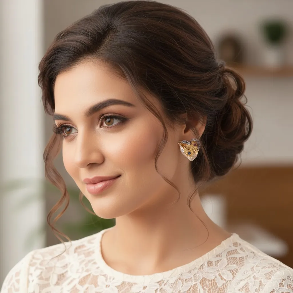 Capture the essence of artistic romance with the Celestial Heart Mosaic Studs. These captivating earrings feature a bold, sculptural heart silhouette with a sophisticated dual-finish. The outer "molten" frame is rendered in a sleek, hammered silver finish, while the recessed center glows with a radiant golden spiral pattern that draws the eye inward.