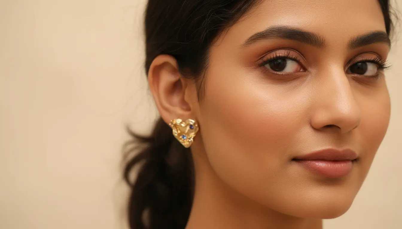 Channel vintage-inspired glamour with the Gilded Heart Crystal Studs. These exquisite earrings feature a bold, oversized heart silhouette with a unique hammered "molten" gold texture. The recessed center of each heart is intricately detailed with a concentric spiral pattern, creating a sense of depth and movement. To add a touch of royal brilliance, each heart is meticulously hand-set with multi-colored crystals in shades of sapphire blue, amethyst purple, and shimmering diamond white. These earrings perfectly blend avant-garde architectural design with classic romanticism, making them the ultimate statement piece for those who love jewelry with character and a touch of the "old-world" artistic charm.